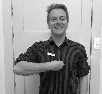– Turn your head towards your curled up arm, while at the same time straighten out your arm like your throwing grain to chooks.